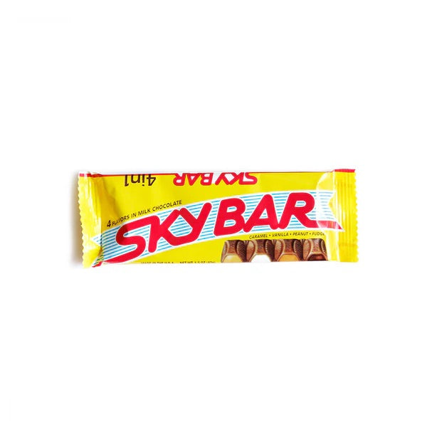 Indulge in the classic, one-of-a-kind Sky Bar—a delicious chocolate bar with four distinct, creamy fillings in one! Each section offers a unique surprise: caramel, vanilla, peanut butter, and fudge, all wrapped in smooth milk chocolate. Perfect for those who love variety in every bite, this nostalgic treat is a must-have for candy lovers. Grab yours now and experience a timeless favorite!