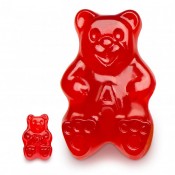 Get ready for this huge gummi bear -they're nearly 3" tall! These are incredibly soft and delicious and very fun to eat. Shown in comparison to a standard size bear.